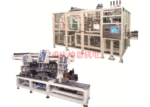 该设备为全自动密封性检测专用设备。采用在线旁置式结构,采用架机械手将工件抓取到底模板上一面两销定位;然后工件自动拉进到检测工位进行封堵及检测,最终通过检漏仪判定是否合格。不合格工件通过回转台送至废料滚道。